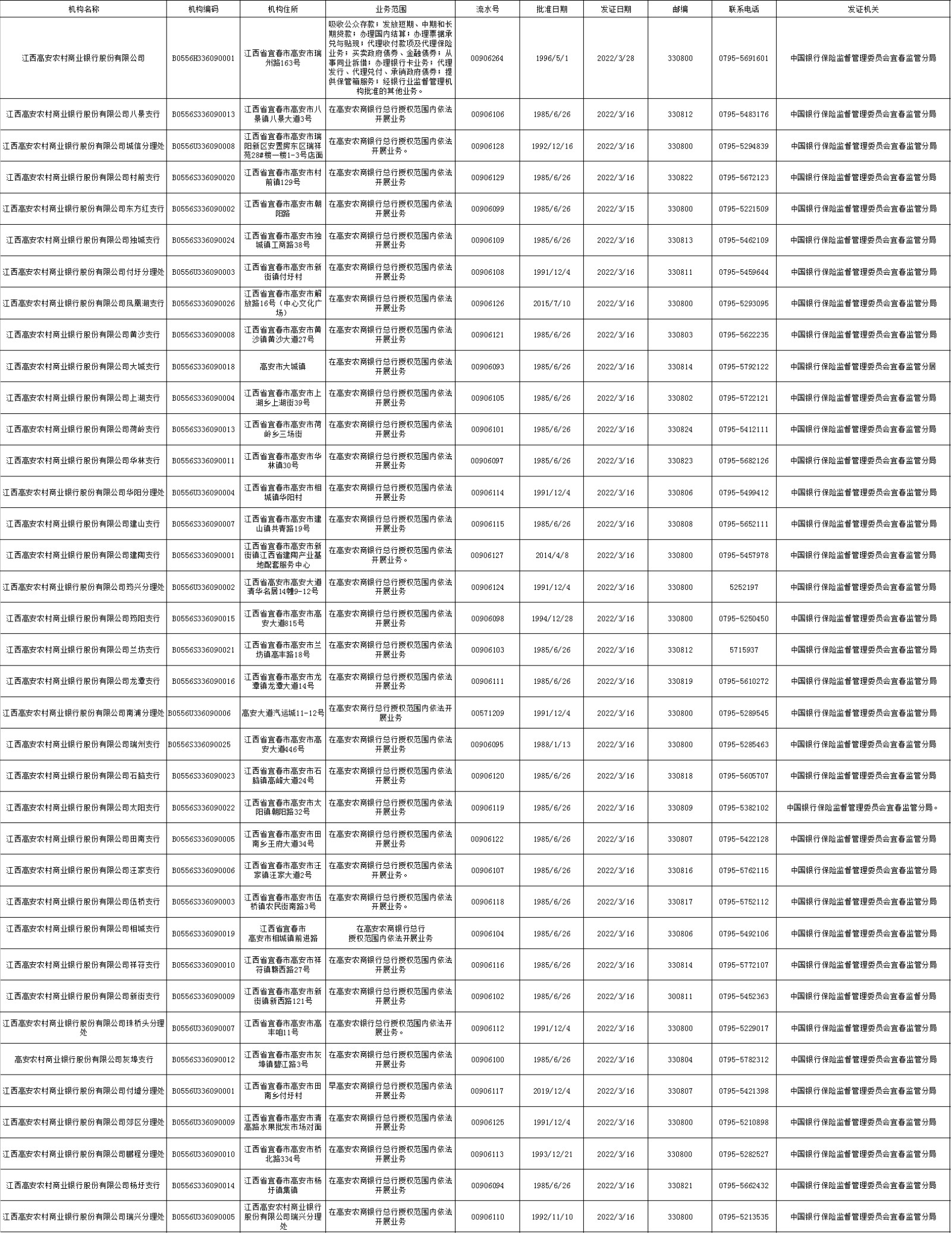 经中国银行保险监督管理委员会宜春监管分局批准,集中更换新版《中华人民共和国金融许可证》,现予以公告: