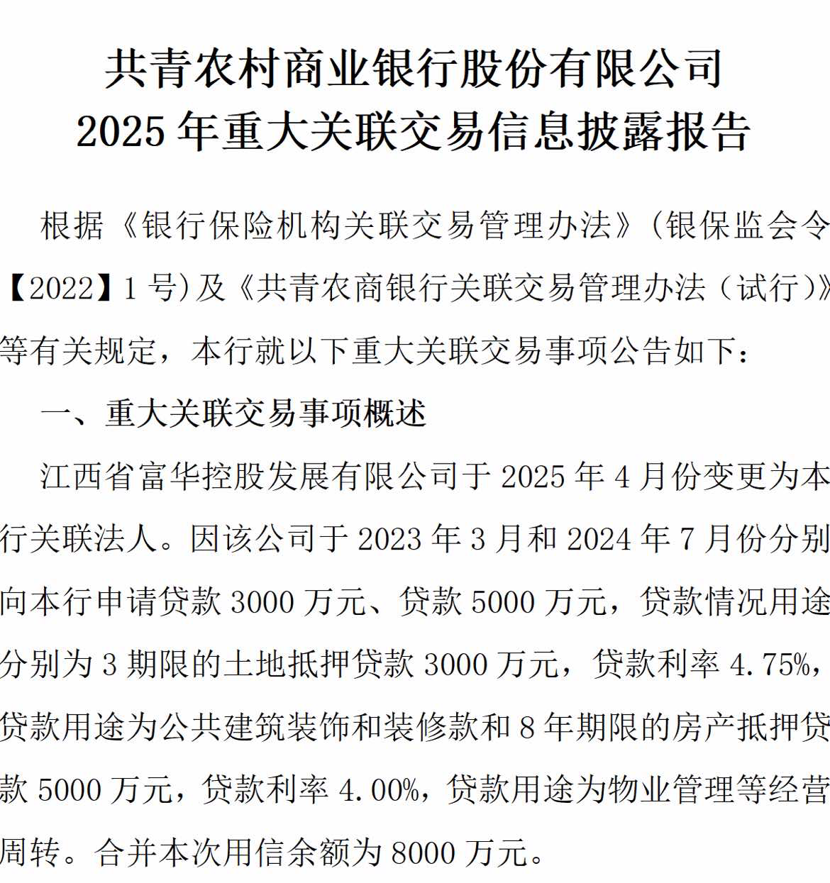 共青农村商业银行股份有限公司 2025年重大关联交易信息披露报告