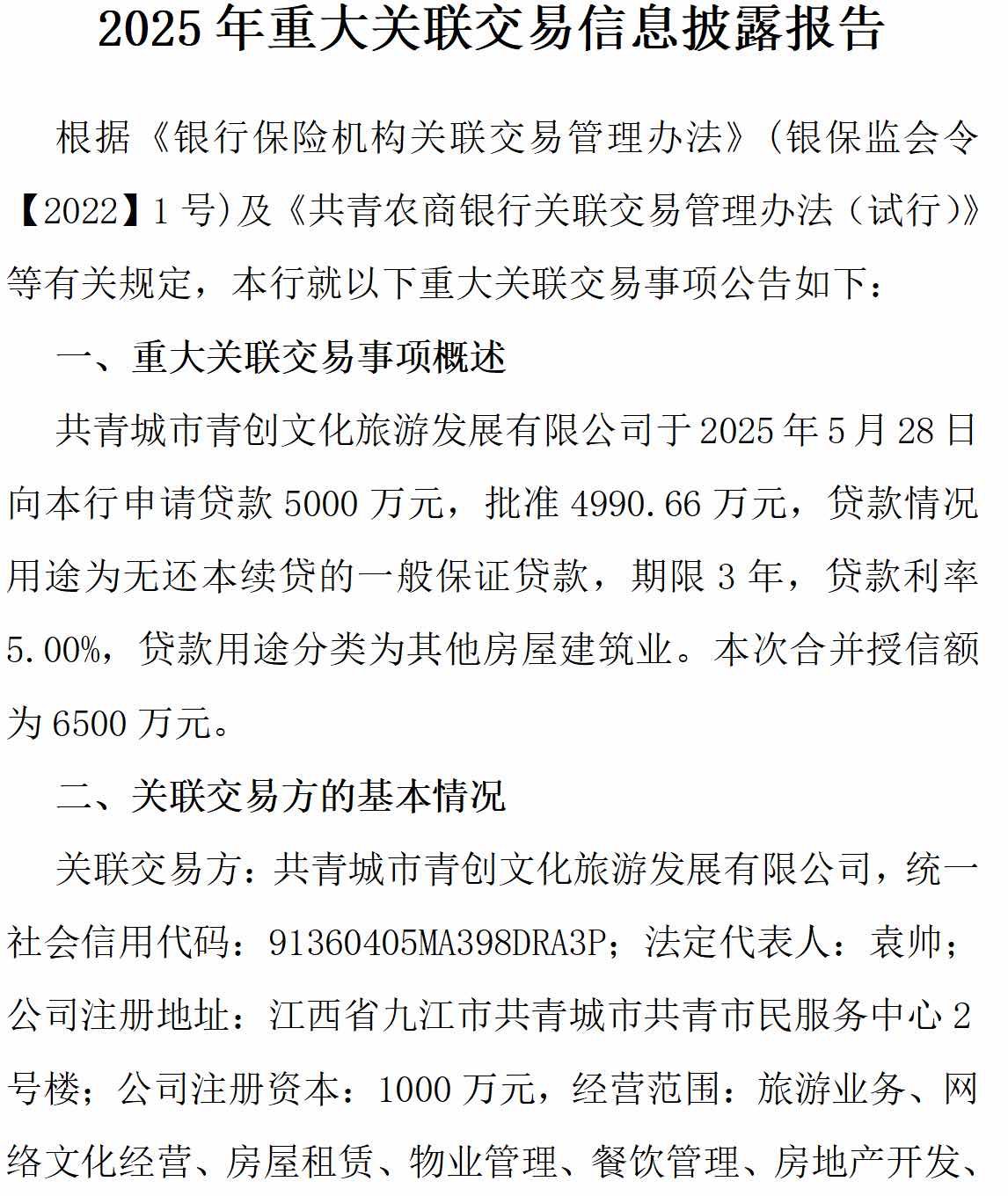 共青农村商业银行股份有限公司 2025年重大关联交易信息披露报告2