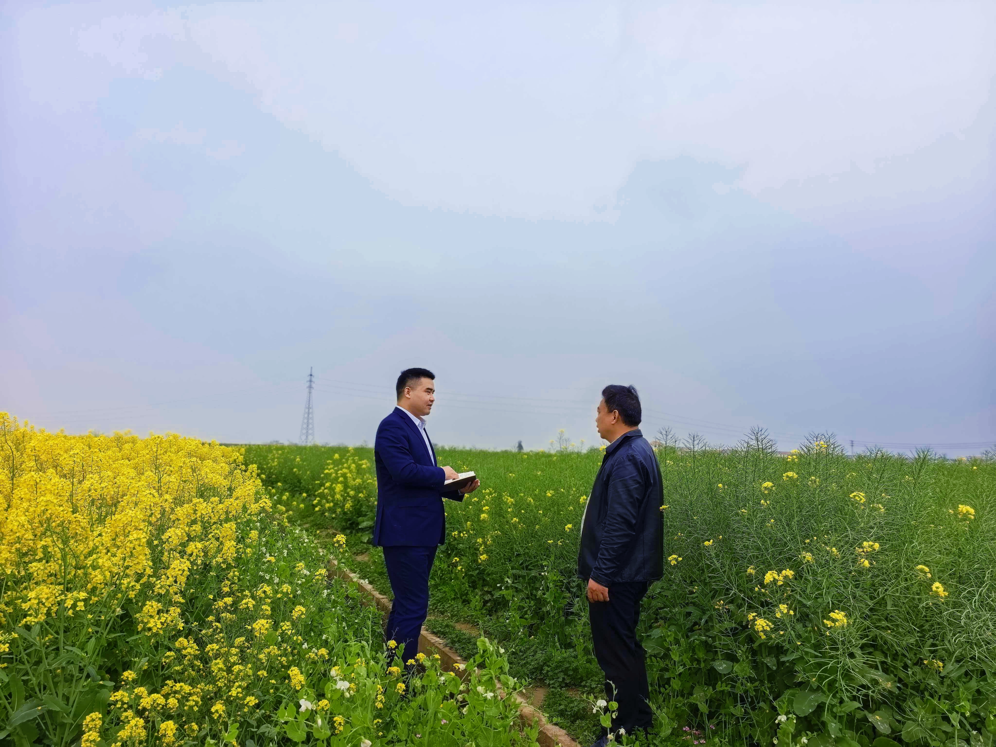 ▲安义农商银行客户经理深入田间地头走访调研,精准对接农户春耕春种资金需求
