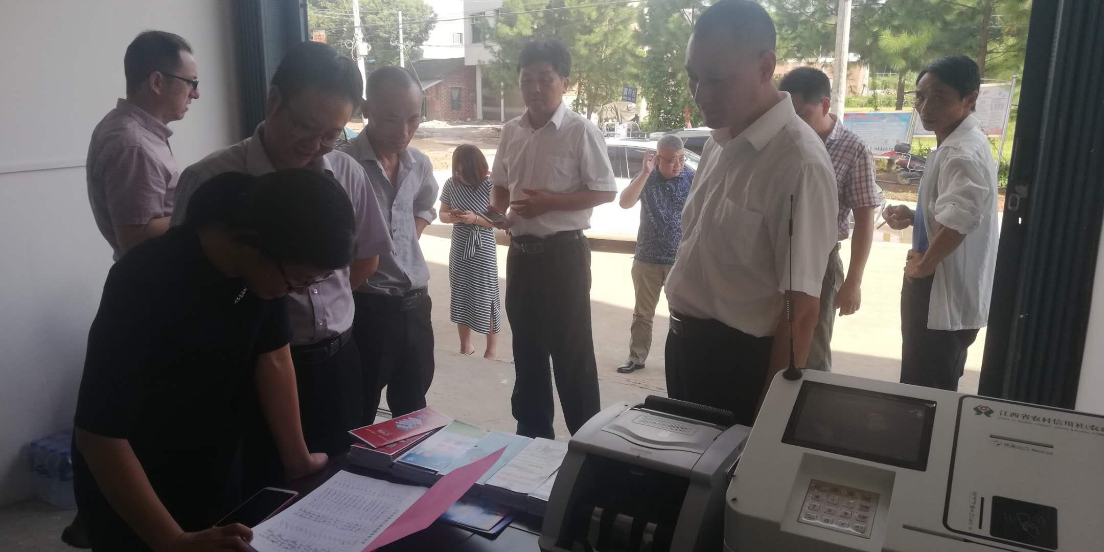 9月18日,烈日炎炎,人行上饶市中心支行副行长王佩佩一行来到万年县齐埠乡黄坪村,考察指导金融扶贫服务站工作,人行上饶市中心支行支付结算科科长王新平、人行万年县支行行长王晓、副行长袁军、万年农商银行行长吴庆丰等陪同。