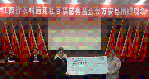 金秋十月,丹桂飘香,10月29日,万安联社在万安中学举办了“江西省农村信用社百福慈善基金会”捐赠仪式,县宣传部、县教体局、万安联社、万安中学、崇文中学相关负责人及100名受助学生参加仪式,此次受助的百名学生均系家境困难且品学兼优的学生,今年万安联社继续以百福慈善基金会为平台,以“帮困助学、奉献社会”为宗旨,向100名学生捐赠12万元,平均每人1200元。